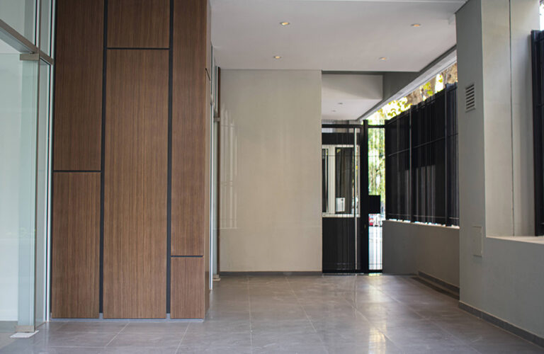 – Grandes aberturas de aluminio anodizado ALUAR con doble vidrio con cámara de aire para mejorar la aislación térmica y acústica.