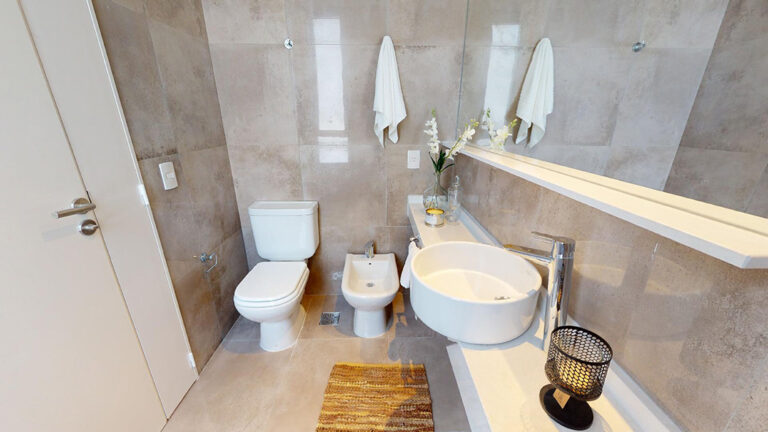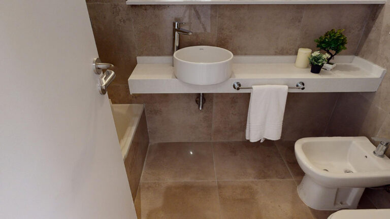 – Baño en suite con receptáculo duchero y segundo baño con bañera tradicional, con mesada de cuarzo (Silestone o similar).