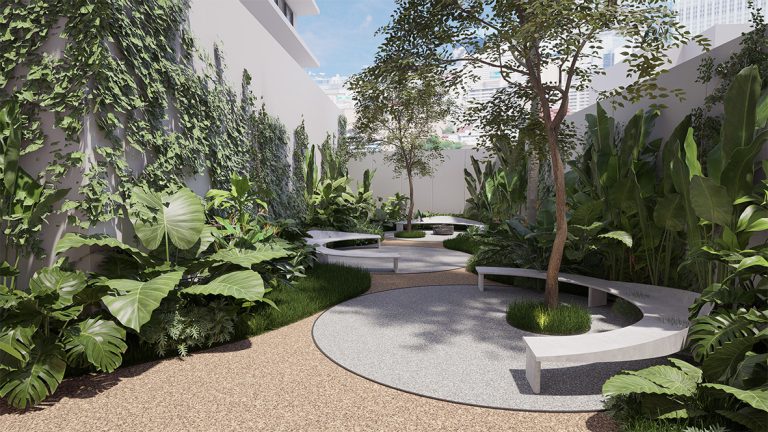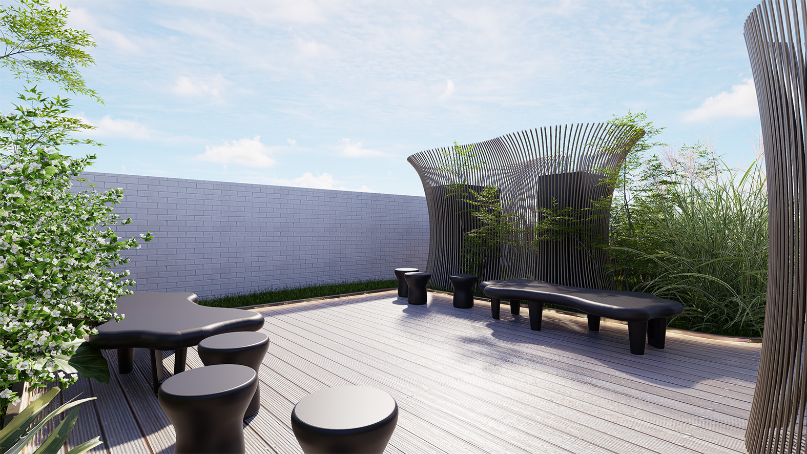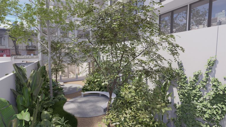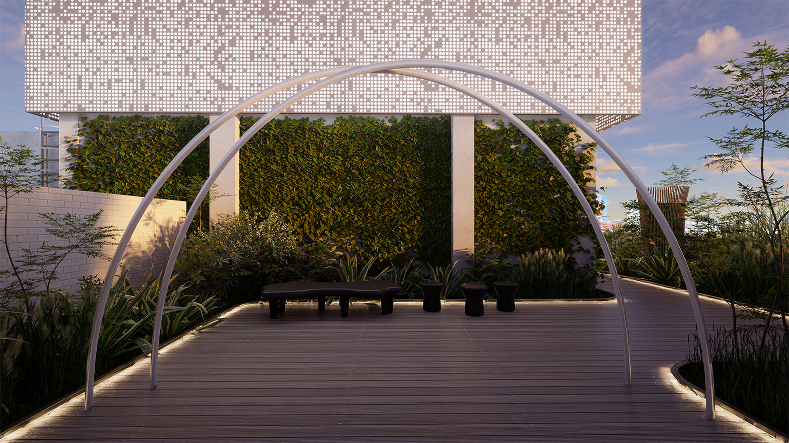 Gran espacio verde en el piso 15º con increíbles vistas de la ciudad, para relajar y disfrutar.